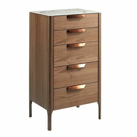 Комод с 5 ящиками, изготовленный из шпона ореха с имитацией мраморного стекла